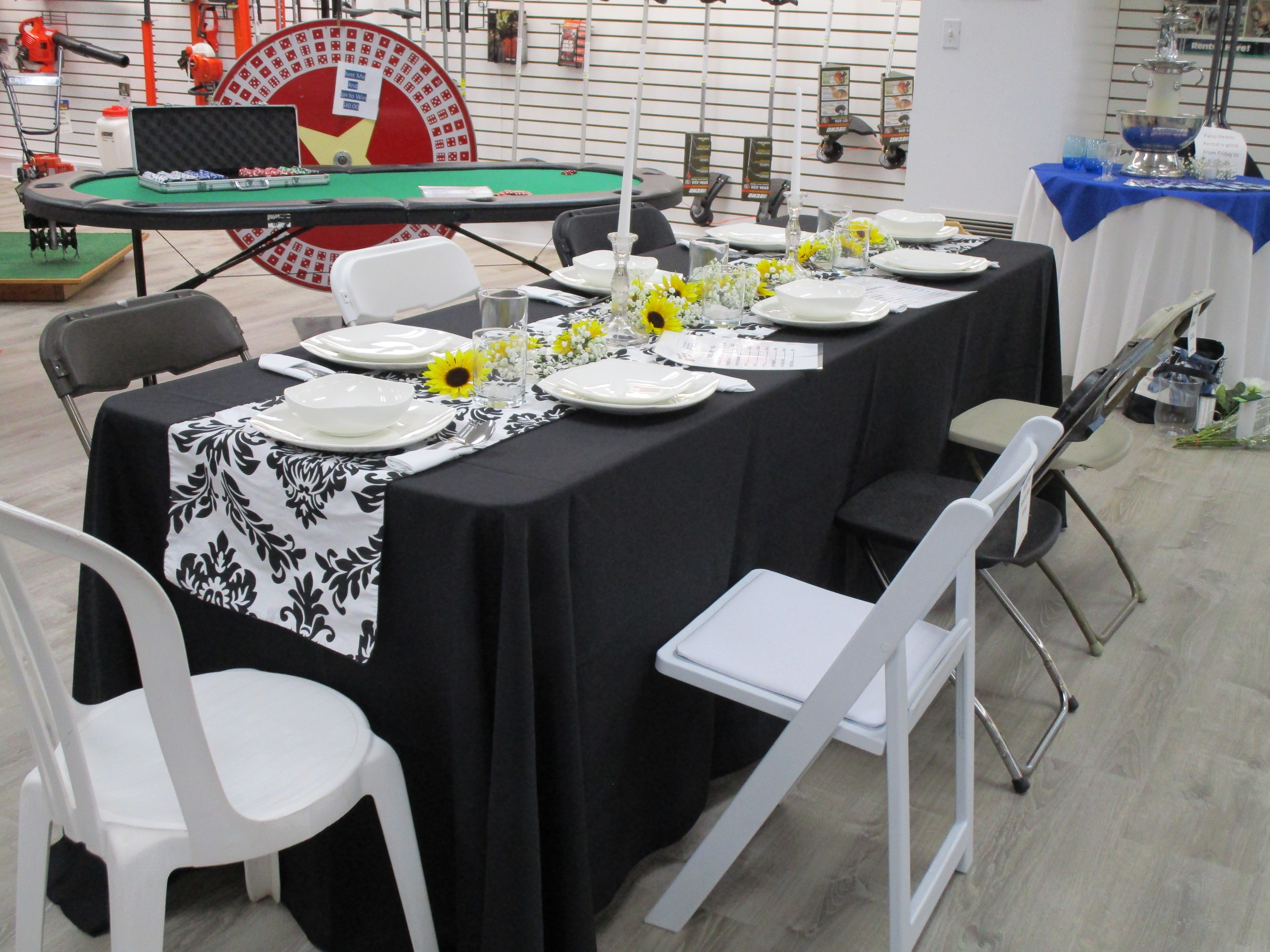 Event Rentals Tents Chairs & Tables Inflatables Games Food Service Business Promotional Audio / Visual Heaters & Fans Casino Linens