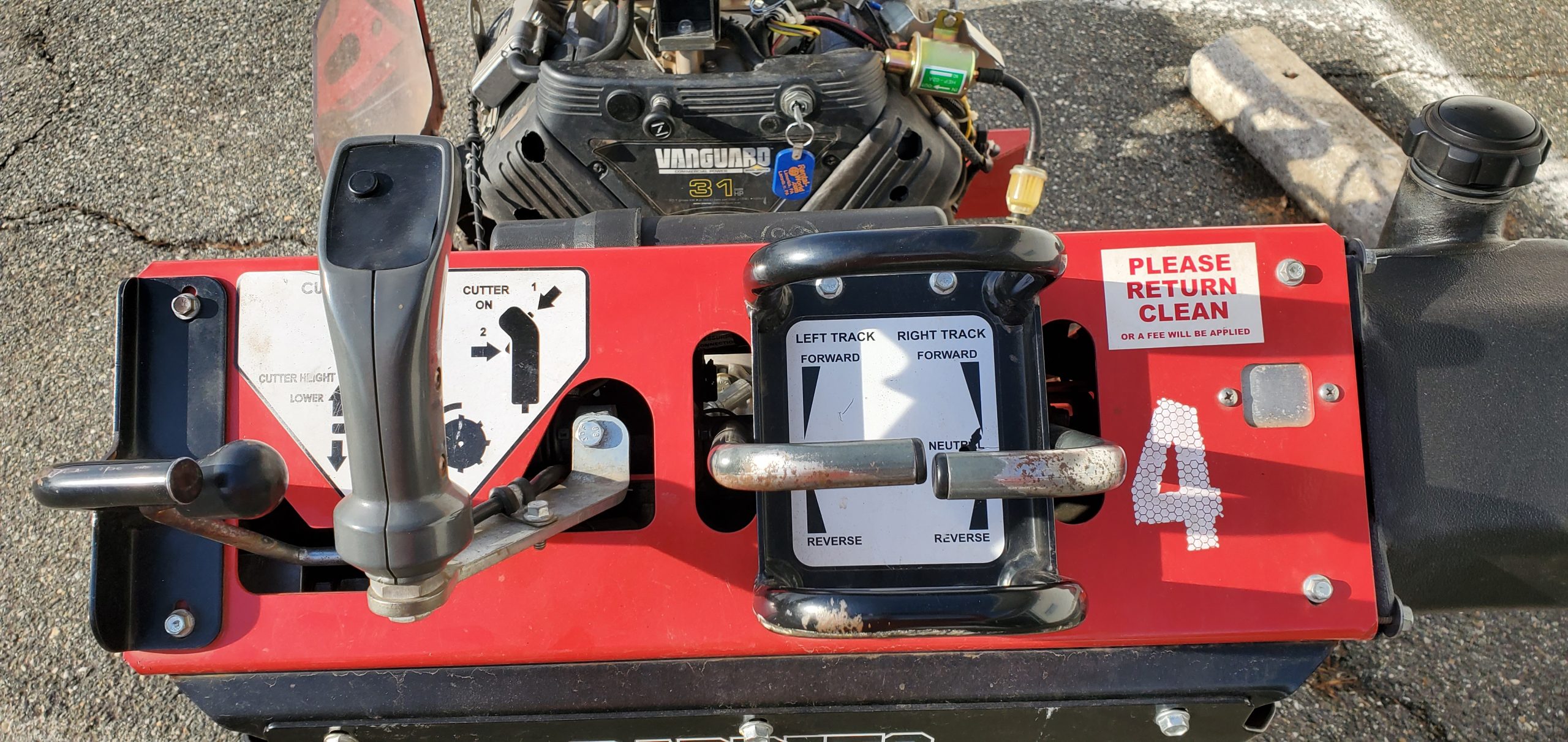 - Easy controls operate the track drive and cutter wheel