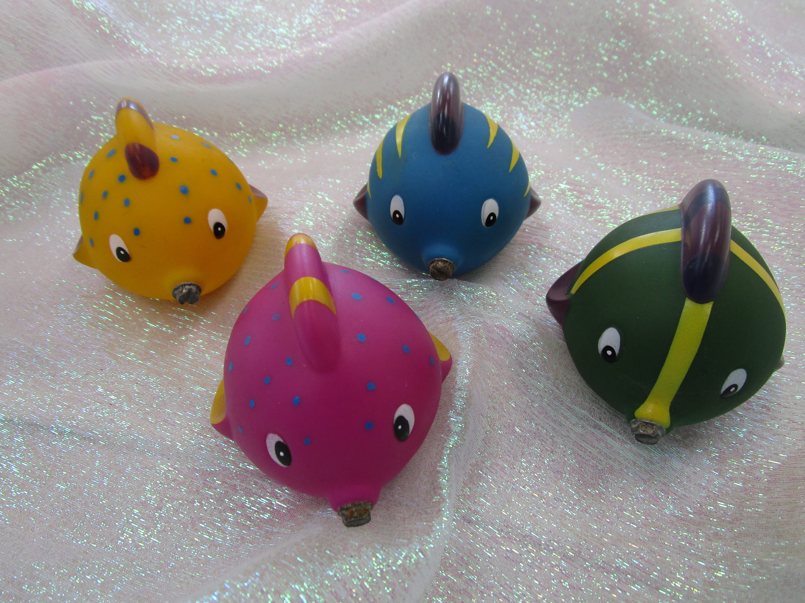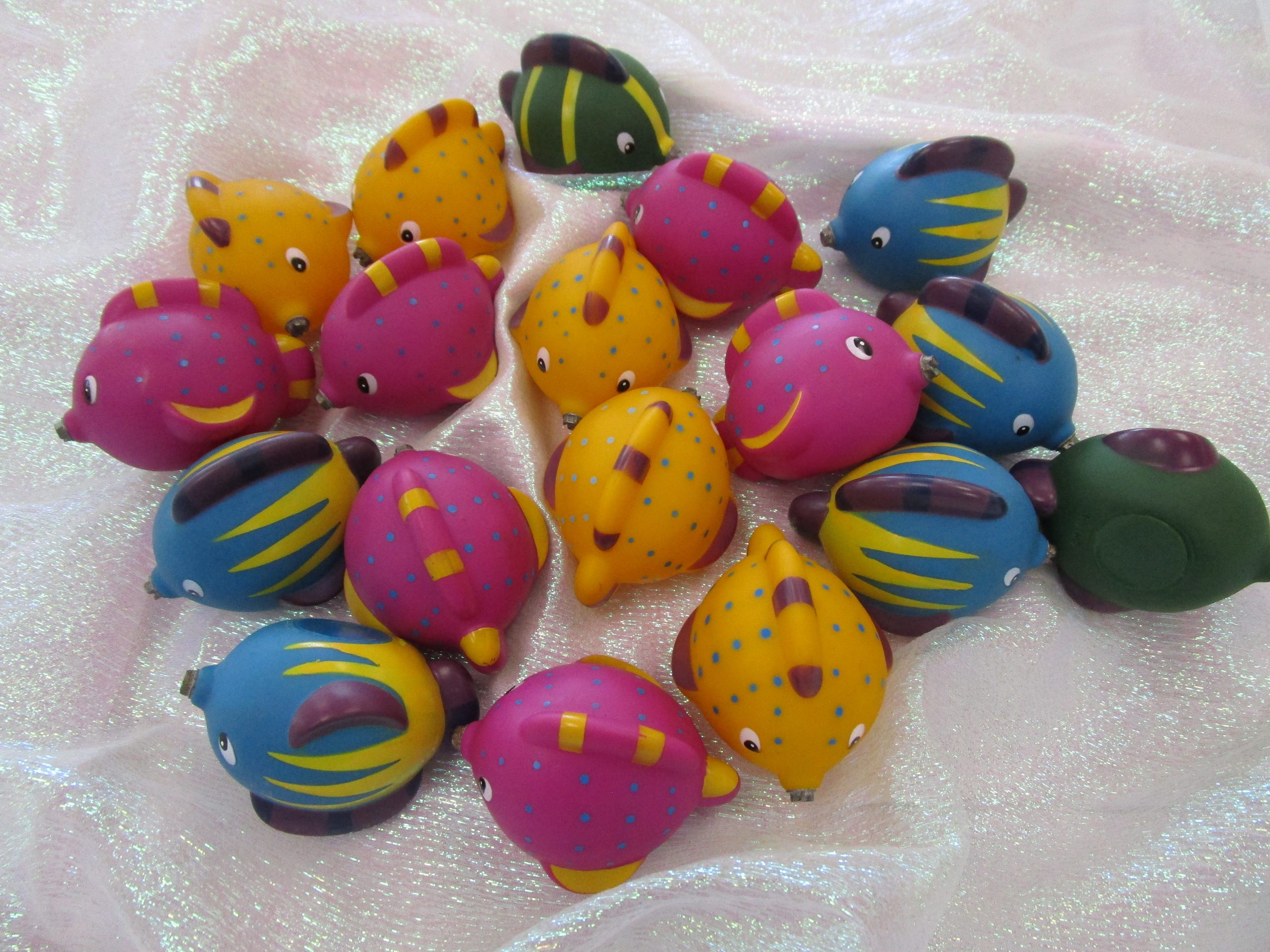 Colorful and cute, this carnival game challenges participants to maneuver the fishing pole and it’s magnet to catch the fish with a metal tip on their nose.  Just add kids of any age and water ~ the laughter won’t stop as they try their best to catch the fish.