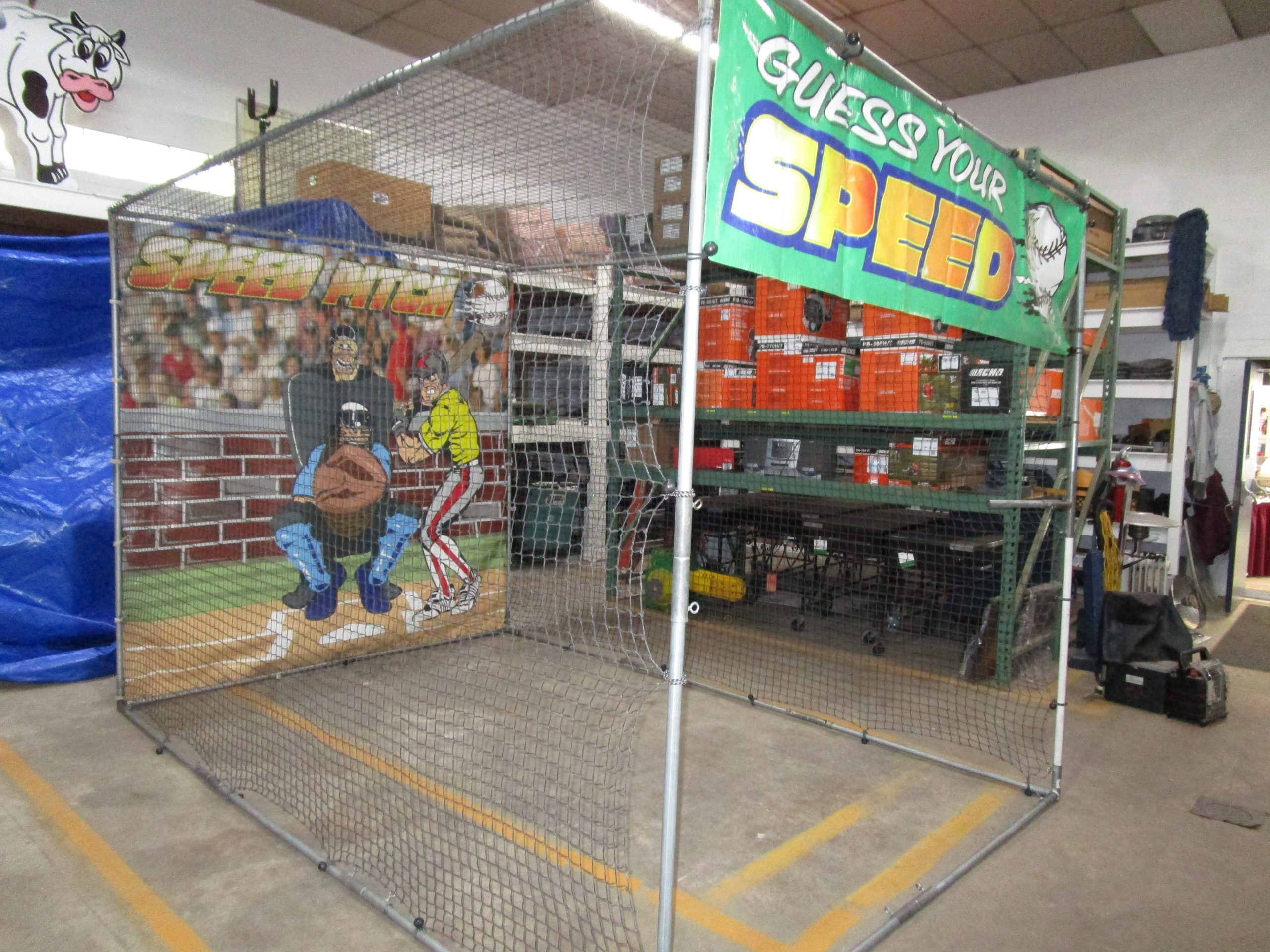 Swing Batter Batter Swing!!! Compete and practice your pitching before ever stepping on the mound. This portable, rugged Speed Cage with Baseball Backdrop game is easy to set up and features a professional sports radar gun which can clock speeds from 6 to 150 mph. Guests will love finding out their pitching speed – how fast is your pitch?